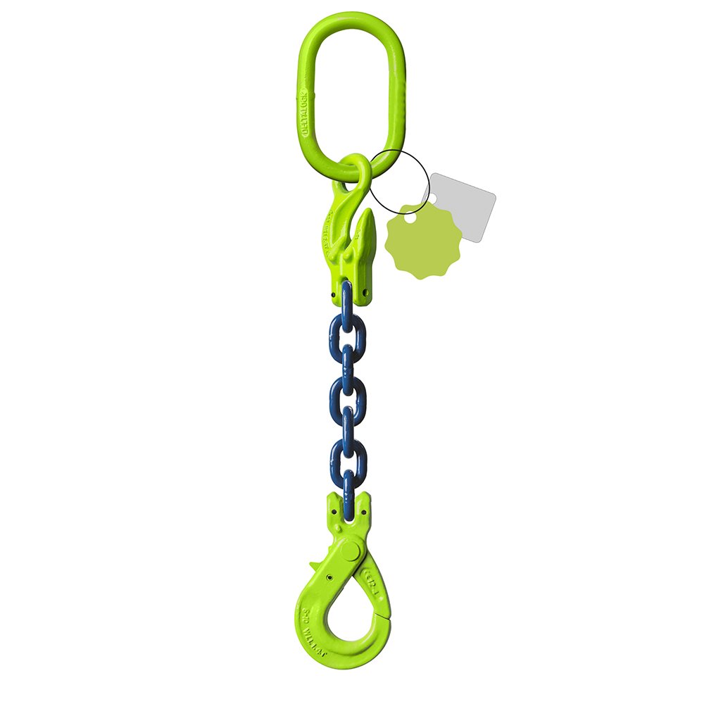 Grade 100 – 1-leg chain sling 20 mm x 1 meter – With self-locking hook and grab hook